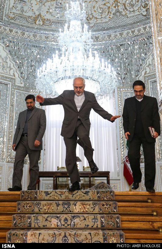 ظریف در حاشیه دیدار رییس کمیسیون سیاست خارجی سنای ایتالیا نزدیک بود با سر از پله ها فرود بیاید.