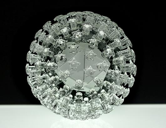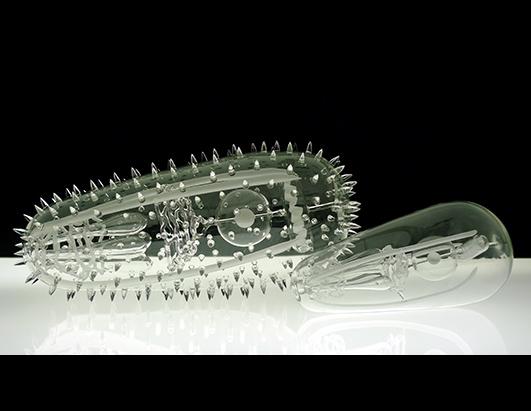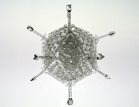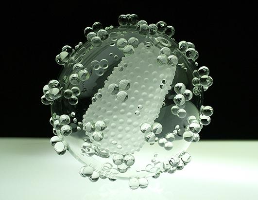 عصر ایران - "لوک جرام" هنرمند آمریکایی مجسمه هایی از جنس شیشه شبیه به ساختار سلول های ویروسی کشنده ساخته است. (منبع: ای بی سی نیوز)