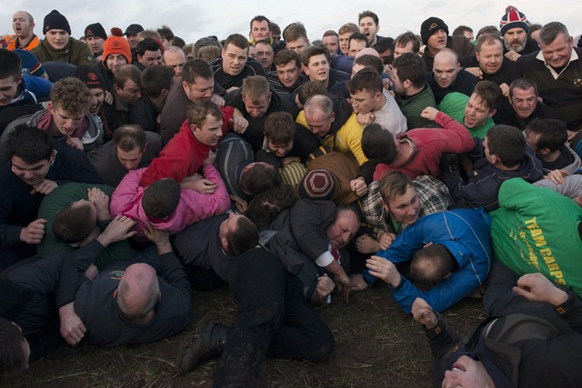 یک بازی راگبی به سبک انگلیسی که در آن به جای توپ از یک لوله چرمی استفاده می شود
