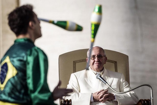 نمایش یک گروه آکروباتیک برزیلی در مقابل پاپ در واتیکان