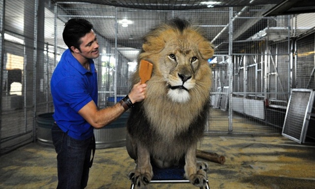آماده کردن شیر سیرک اورلاندو فلوریدا آمریکا برای نمایش شب