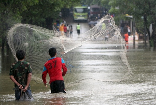 سیل در جارکارتا اندونزی و ماهیگری در سیلاب