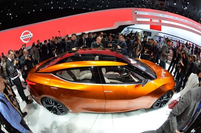 نمایش یک مدل خودروی نیسان (سدان) در نمایشگاه خودروی آمریکای شمالی در شهر دیترویت آمریکا