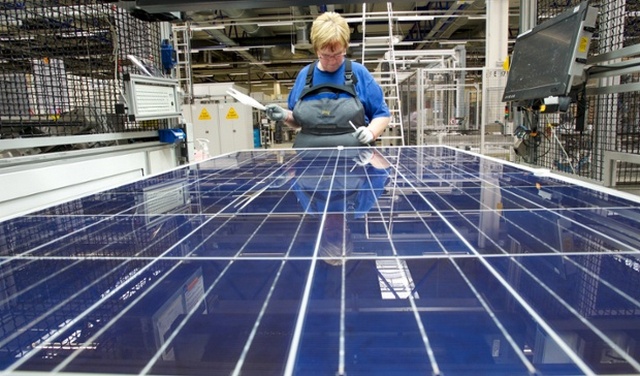 ساخت پنل های خورشیدی در کارخانه ای در فرایبورگ آلمان