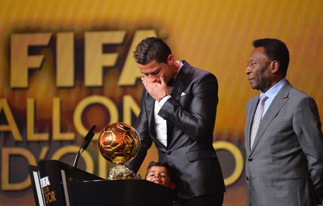 گریه رونالدو هنگام دریافت جایزه توپ طلا به عنوان بهترین بازیکن فوتبال در سال 2013 (زوریخ سوییس)