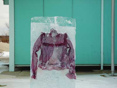 بسیاری از هنرمندان با استفاده از یخ دست به خلاقیت‌های متفاوت زده‌اند، این باز نیز یخ‌ها شگفتی ساز شده‌اند.نیکول دکستراس عکاس و مجسمه ساز، لباس‌های مختلف را در قطعات یخ منجمد کرده است.