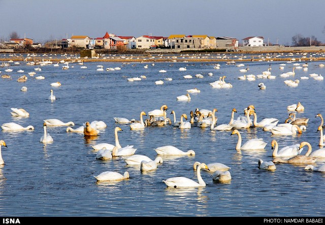 قو های مهاجر در آب‌بندان‌های سرخرود - مازندران (عکس)