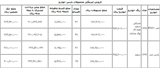 باشگاه خبرنگاران: لیزینگ ملت از آغاز فروش اقساطی خودرو تندر 90 و پارس تندر خبر داد.