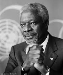 کوفی عنان متولد 1938 در کشور آفریقایی غنا، بین سال های 1996 تا 2007 دبیرکل سازمان ملل متحد بود.