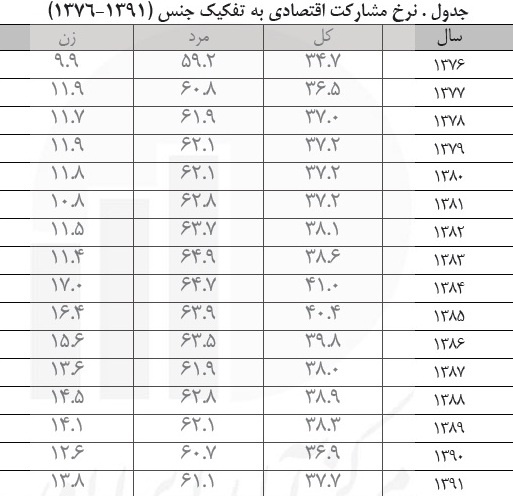 داشته است. در پاییز امسال 62.1 درصد مردان در اقتصاد ایران مشارکت