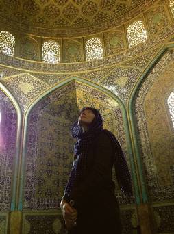 "تانیا لالور" توریست ایرلندی در حال بازدید از مسجد شیخ لطف الله در اصفهان