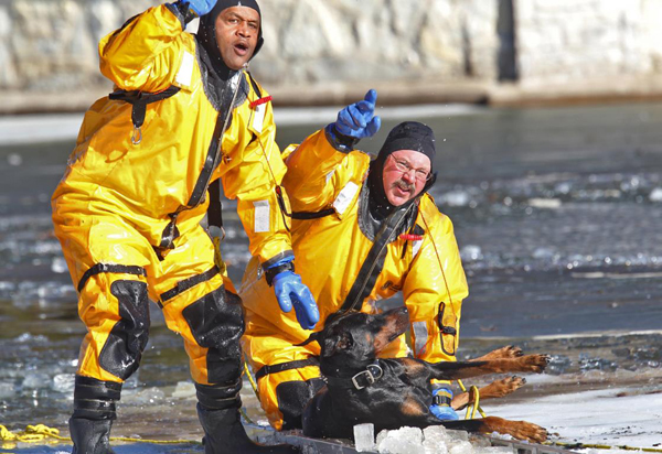 ناگهان با شکستن یخ ها به داخل آب افتاد. ماموران آتش نشانی دقایقی بعد با