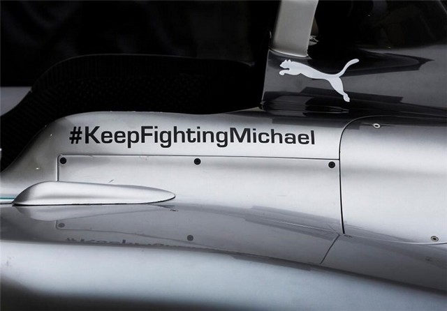 تیم مرسدس با ارسال پیامی روی شبکه اجتماعی خود اعلام کرد: «ما در این هفته که در شهر خِرِس اسپانیا هستیم پیام ویژهای روی اتومبیلهای خود داریم، پس برای حمایت از « میشاییل، به مبارزهات ادامه بده» به ما ملحق شوید».