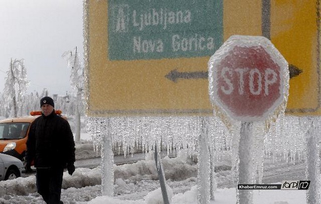 کشور اسلونی در اروپا امسال چنان سرد است که کاملا به تکه یخی در قلب اروپا تبدیل شده است دمای هوا در اسلونی گاهی به ۳۰ درچه زیر صفر می‌رسد.