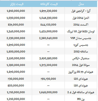 جدیدترین قیمت انواع "خودروهای هیوندای" (جدول)