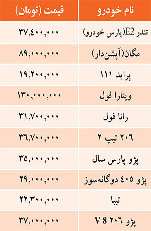قيمت خودرو‌های داخلی در بازار (جدول)