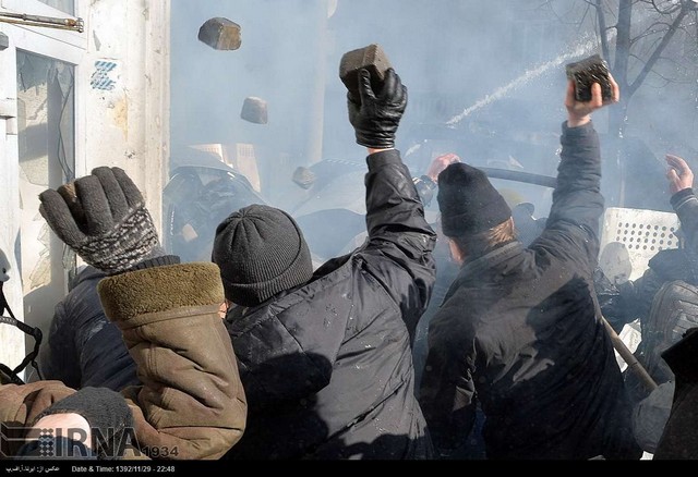 پلیس اوکراین به تظاهرات کنندگان میدان استقلال شهر کی یف هشدار داد تا پایان عصر سه شنبه به تجمع و تظاهرات خود پایان دهند. پس از این هشدار معترضان با نیروهای انتظامی که مانع ورود آنها به میدان استقلال می شدند، بشدت درگیر شدند.