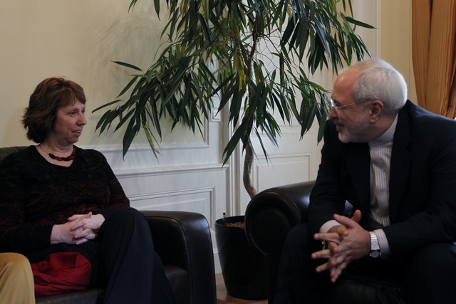 محمد جواد ظریف وزیر امور خارجه و کاترین اشتون مسوول سیاست خارجی اتحادیه اروپا در دومین روز مذاکرات ایران و 1+5 در وین اتریش با یکدیگر دیدار و گفت و گو کردند.