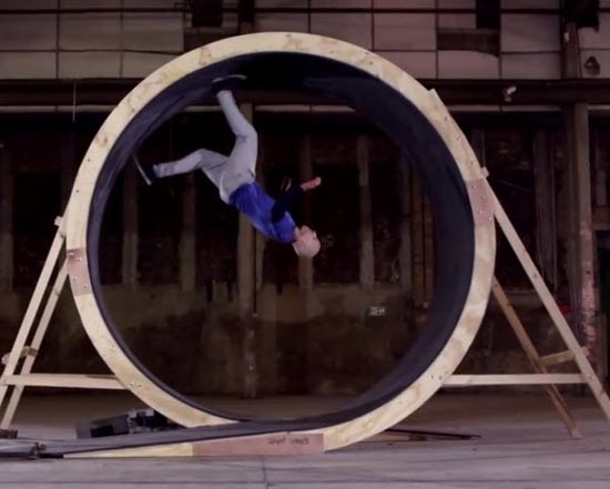 یک پزشک: شاید دیده باشید که بعضیها با کمک موتورسیکلت حرکات جالبی میکنند، مثلا در سطح داخلی یک حلقه حرکت میکنند، اما آیا انسان با پاهای خود و بدون استفاده از هیچ وسیله کمکی میتواند آنقدر نیرو و شتاب داشته باشد که در سطح داخلی یک حلقه بدود؟!
