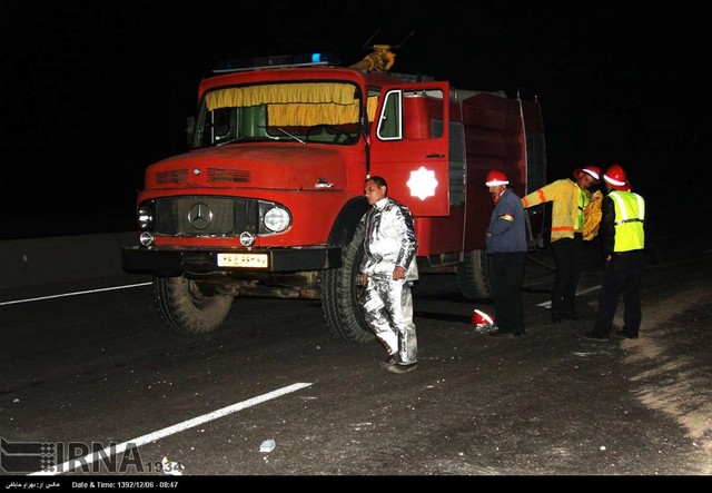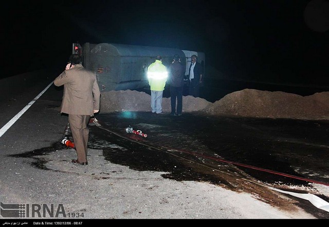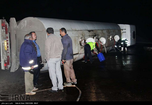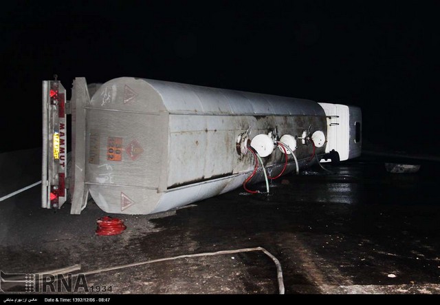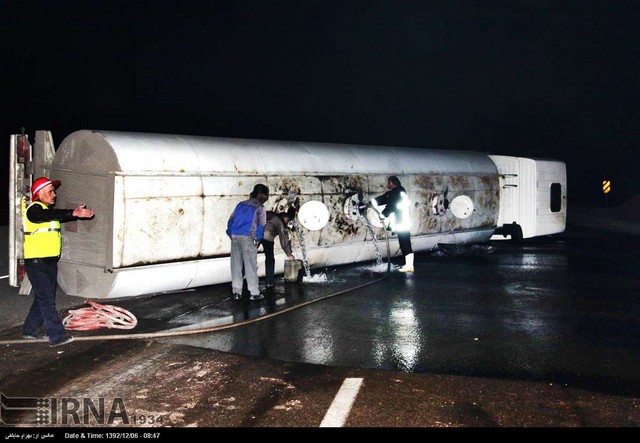 واژگونی تریلر حامل بنزین در آزاد راه ساوه - تهران (عکس)