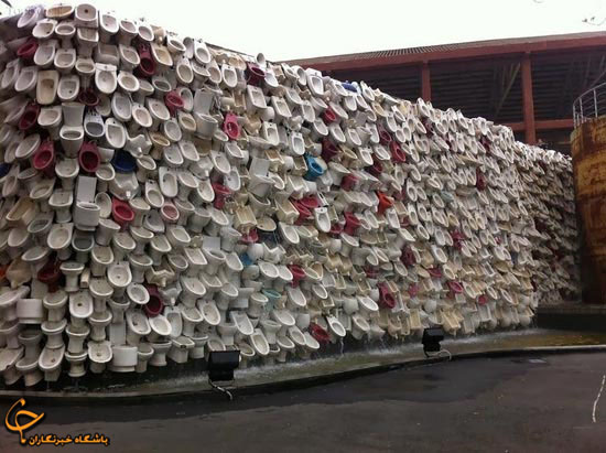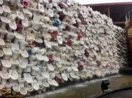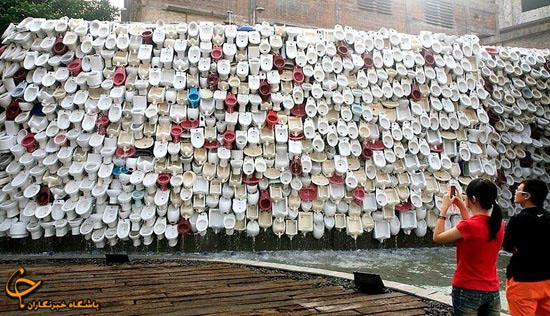 در یکی از شهرهای چین، هنر عمومی عجیب و غریبی در خیابان ساخته شده است. یک دیوار به طول 100 متر با 10 هزار کاسه توالت تزئین شده و آبشاری از آنها پایین می آید.