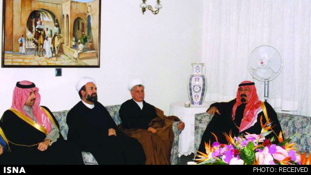در این تصویر عبدالله بن عبدالعزیز (پادشاه فعلی عربستان سعودی) در کنار اکبر هاشمی رفسنجانی (رئیس مجمع تشخیص مصلحت نظام)، نوری (سفیر وقت ایران در ریاض) و شاهزاده عبدالعزیز پسر ملک عبدالله (قائم مقام وزیر خارجه عربستان سعودی) دیده می شود.