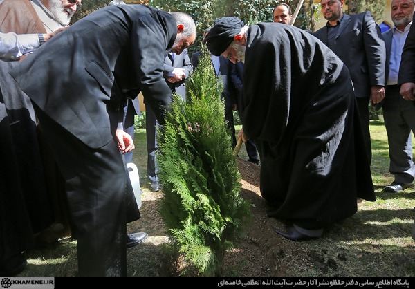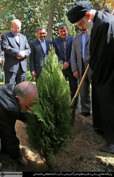 در هفته منابع طبیعی و در آستانه روز درختکاری، آیت الله خامنه ای رهبر معظم انقلاب اسلامی ظهر چهارشنبه یک اصله نهال غرس کردند.