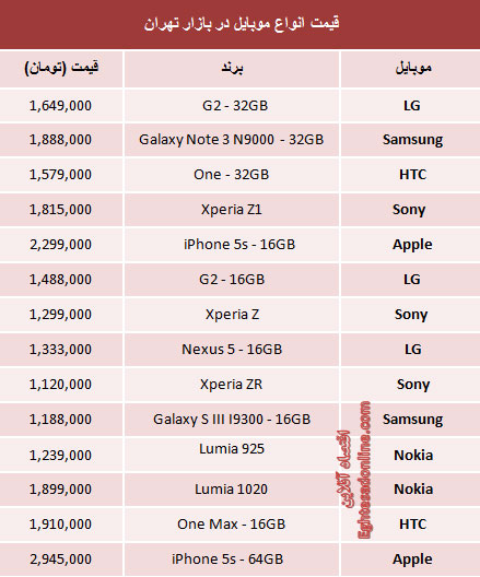 به گزارش اقتصاد آنلاین، قیمت مدل ها و برندهای برتر گوشی تلفن همراه که بیش از یک میلیون تومان قیمت خوردهاند بر اساس میزان محبوبیت به شرح زیر است؛