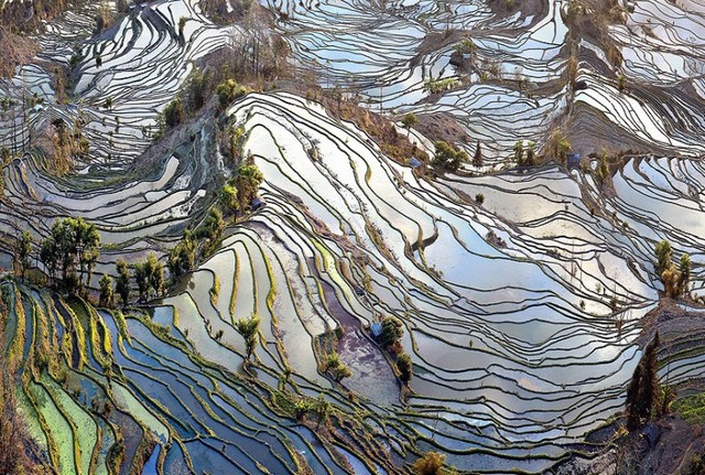 نمایی از شالیزارهای کشت برنج در استان یونان چین