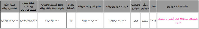ليزينگ ملت از آغاز فروش اقساطي سانتافه 2014 با اقساط 36 ماهه خبر داد.به گزارش صبحانه، شرايط اين طرح به شرح زير مي باشد: