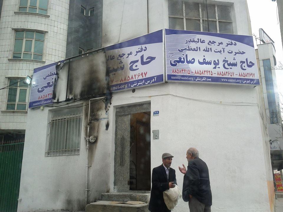 به گزارش خردادنیوز، تابلوی یکی از دفاتر آیت الله صانعی در يكي از مناطق غربي تهران بر اثر حمله افراد ناشناس با مواد آتشزا تخریب شد.