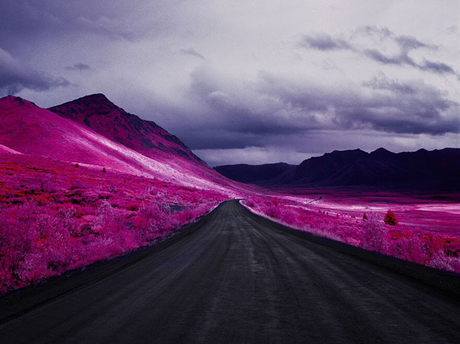 جاده ای زیبا در پارک " تومپسدون" در منطقه "یوکون" کانادا