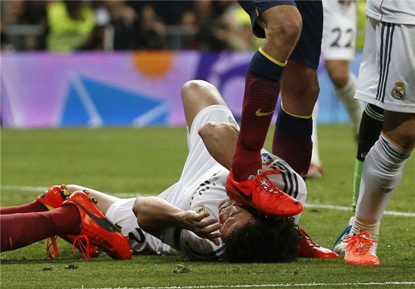 داور اسپانیایی شب گذشته حرکت غیر ورزشی هافبک بارسلونا روی مدافع رئال را ندید.