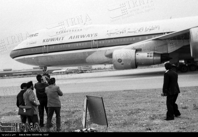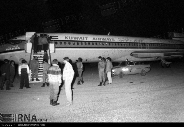 یک فروند هواپیمای مسافربری خطوط هوایی کویت که 16 فروردین ماه سال 1367 در مسیر بانکوک به کراچی ربوده شده بود ، در فرودگاه مشهد به زمین نشست.