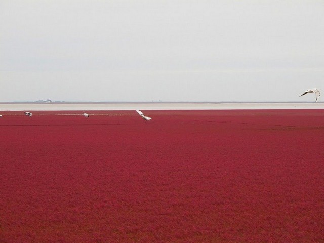 این پدیده توسط یک نوع علف دریایی به وجود می آید که در فصل پاییز به رنگ قرمز روشن در می آید