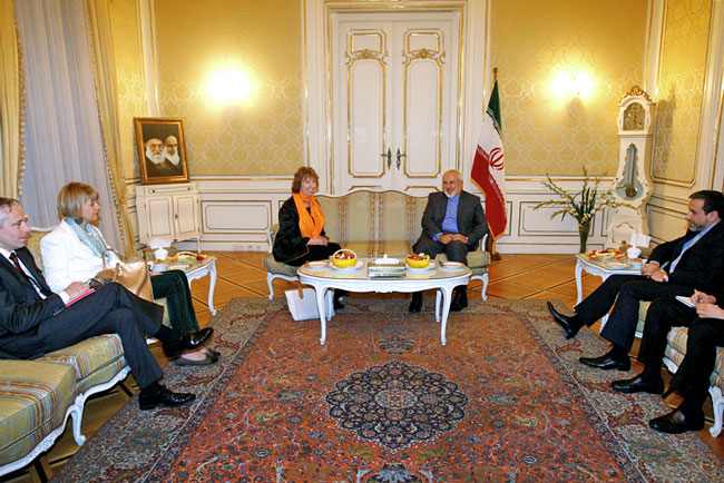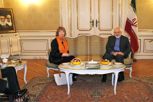 ایرنا: ضیافت شام کاری محمدجواد ظریف وزیر امور خارجه ایران و کاترین اشتون مسئول سیاست خارجی اتحادیه اروپایی به عنوان روسای مذاکره کننده ایران و گروه 1+5 شامگاه دوشنبه در محل دفتر نمایندگی ایران در وین برگزار شد.
