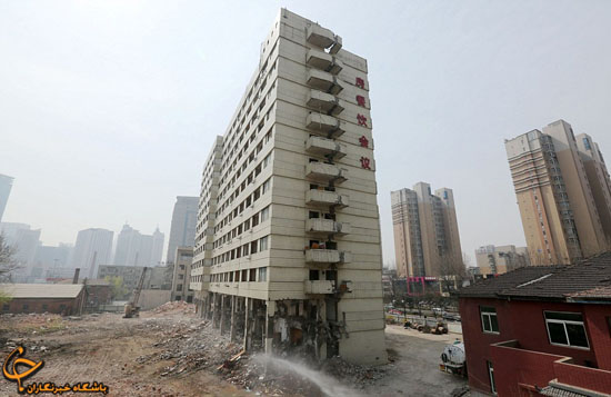 در شمال‌شرقی چین توانسته‌اند با انفجار کنترل شده‌ای نیمی از یک ساختمان را تخریب کنند بدون این که نیمه‌ی دیگر آسیب ببیند.