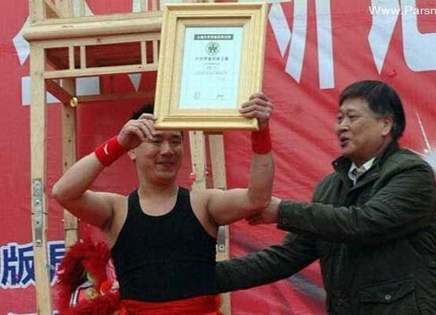 روزگارنو: Li Hongxiao توانست با بلند کردن 23 نیمکت توسط دندان هایش به مدت 11 ثانیه رکورد جهانی برای خود ثبت کند.