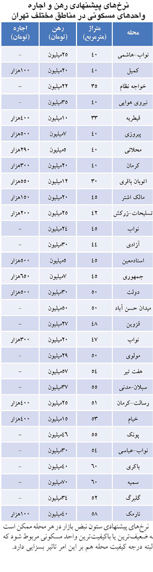 نرخهای پیشنهادی ستون نبض بازار در هر محله ممکن است به ضعیفترین یا باکیفیتترین واحد مسکونی مربوط شود که البته درجه کیفیت محله هم بر این امر تاثیر بسزایی دارد.
