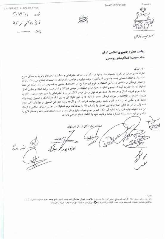 چند نفر از نمایندگان اصفهان با نوشتن نامه ای به رئیس جمهور او را تهدید کردند که در صورت دفن فرای با "عکس العمل شدید کنترل نشده مردمی" مواجه خواهد شد!این نمایندگان نگفته اند که اگر فرای جاسوس بود ، چرا این عکس العمل کذایی را هنگام سفر او به ایران و اصفهان و دیدار با رئیس جمهور وقت ، راه نینداختند؟!