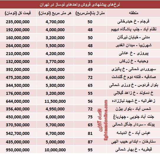 قیمت جدید آپارتمان های نوساز در تهران (جدول)