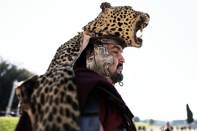 بازیگر نقش لژیونر رومی در نمایش روم باستان در شهر رم
