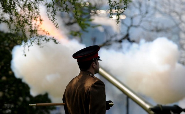 توپ در کردن به افتخار هشتاد و هشتمین سالگرد تولد ملکه بریتانیا در یورکشایر