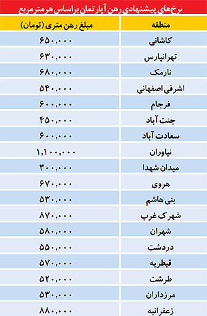 این در حالی است که امسال، متوسط رهن هر مترمربع اجاره واحد مسکونی در مناطق گفته شده 600 تا 800 هزار تومان است.