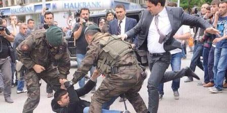 تصاویر منتشر شده در برخی از رسانه های جمعی و شبکه های اجتماعی ترکیه نشان می دهد که یرکل یکی از شرکت کنندگان در تظاهرات روز گذشته علیه اردوغان را در حالی که توسط دو تن از نیروهای ژاندارمری بر زمین انداخته شده است، با لگد مورد حمله قرار می دهد.