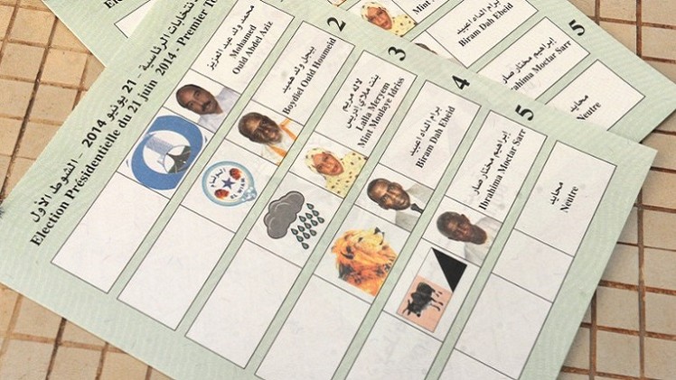 در این تصویر برگ رای ریاست جمهوری موریتانی مشاهده می شود. در برگ رای، علاوه بر اسم و عکس کاندیداهای ریاست جمهوری، نشانه هر یک از آنها نیز مشاهده می شود.