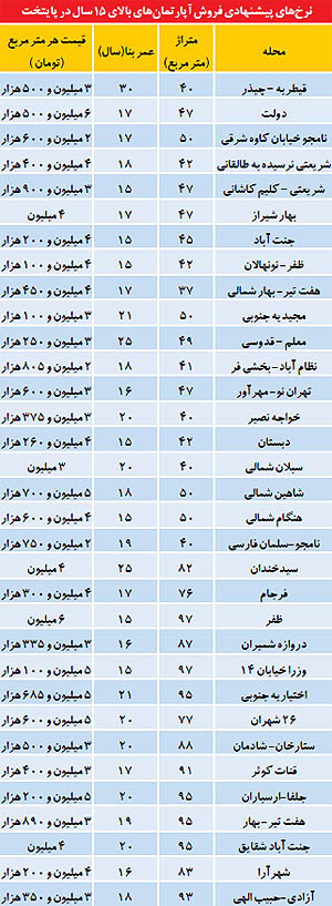 یک فعال بازار مسکن در غرب پایتخت میگوید: اختلاف قیمت یک واحد نوساز با واحد چند سال ساخت بین 10 تا 20 درصد است، بهطور مثال در منطقه ستاری شمالی قیمت یک واحد نوساز به صورت میانگین متری 5 میلیون و 500هزار تا 6 میلیون و 500 هزار تومان است. در حالی که خانههای بالای 15سال در این منطقه را میتوان با متری 3 میلیون و 500 هزار تومان خریداری کرد.