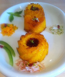 وصاف ميكنيم وروى ان زعفران ميريزيم بعد مرغهارا روى برنج ميچينيم وخلال
