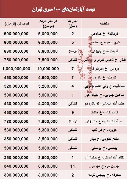 قیمت آپارتمان های 100متری در تهران (جدول)