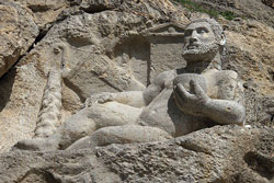 طول مجسمه 1.47 متر که به طور برجسته از سنگ کوه تراشیده شده و از طرف پشت به کوه متصل است. در عقب مجسمه نقوش و کتیبهای به زبان یونانی قدیم روی سنگ نقش شده است.